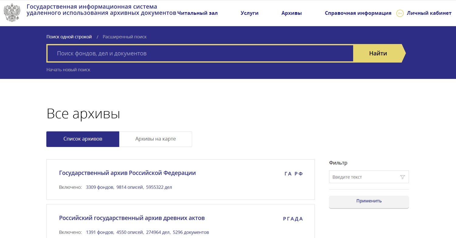 - Выберите в списке архивов РГАДА.