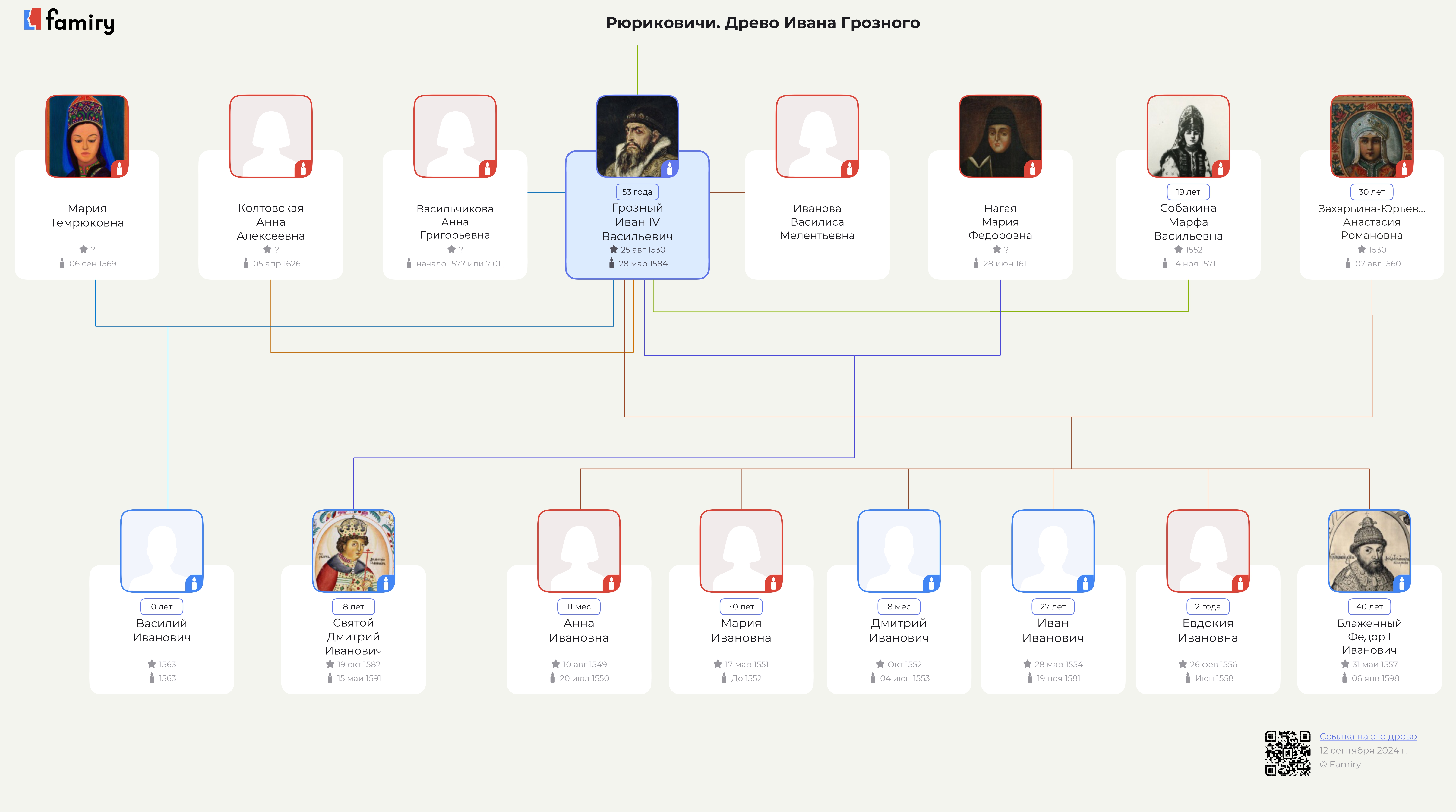 Именно при Грозном, около 1555 г., был составлен официальный «Государев родословец», призванный возвеличить царствующую династию и укрепить права знати. В нем упоминались почти все княжеские фамилии и прописывались родственные связи лиц, занимавших важные государственные должности. На основе этого юридического документа производились назначения на придворную и военную службу, он фактически стал основой формирования политической элиты Русского царства в XVI в. Тогда же получили распространение родословные легенды — о происхождении основателя рода, многолетней или даже многовековой службе его представителей Рюриковичам, а также совершенных подвигах.