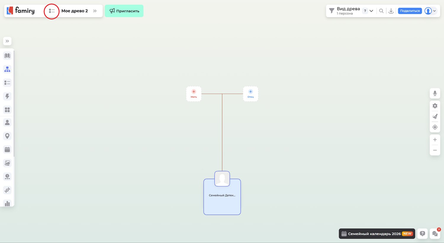 Как создать семейное древо Famiry