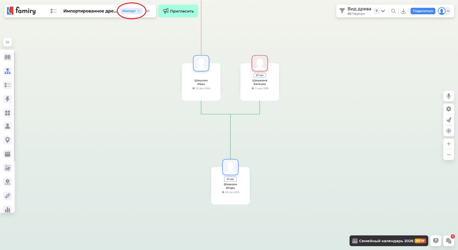 Чтобы загрузить свое древо в Famiry: