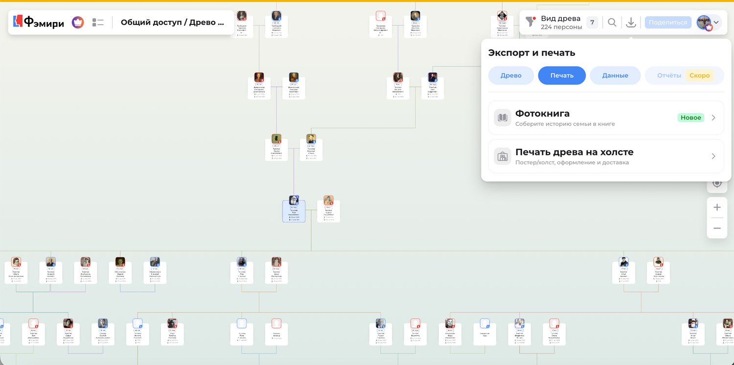 Вы можете заказать печать своего древа в формате картины на холсте. Сделать заказ можно прямо в сервисе.