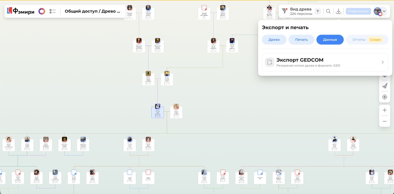 Экспортировать древо в GEDCOM