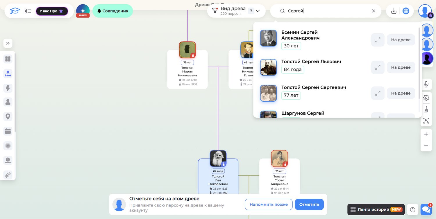 Уже на начальных этапах ввода вам будут предложены варианты, соответствующие параметрам вашего запроса. Далее нажмите кнопку «На древе», чтобы увидеть, где на схеме расположена искомая персона.