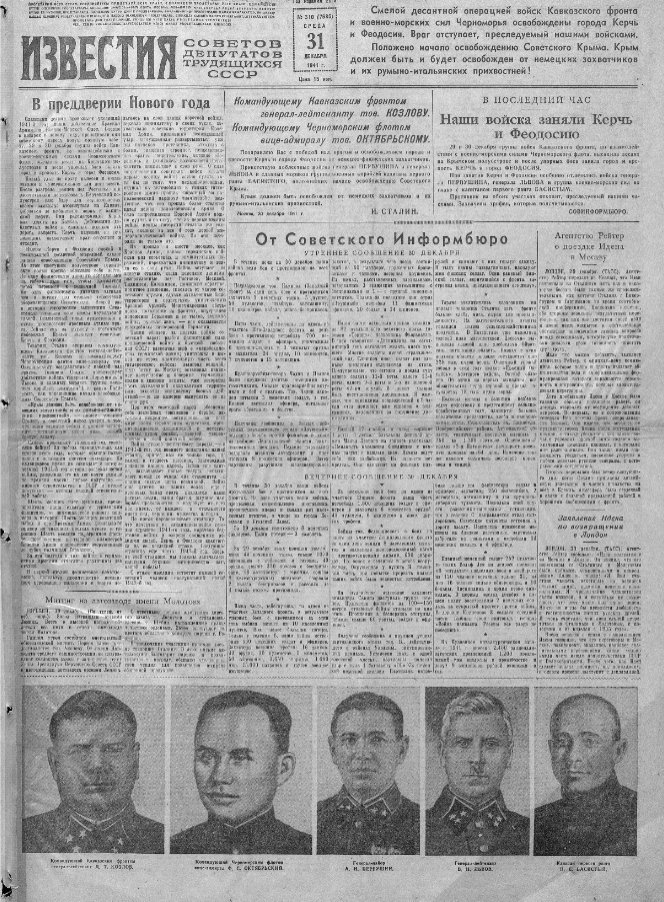 Газета «Известия», 31 декабря 1941 года, № 310