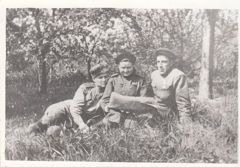 К. Барычкина (Тихонова) с однополчанами 4270ЛБС, 7 мая 1945 года. Источник: МБУК «Музей истории города Отрадного» (museum-otradny.ru)
