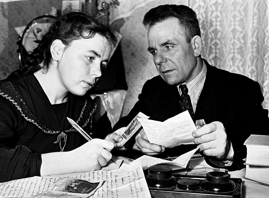 За разбором писем избирателей, 1958, Москва / источник: Валентин Хухлаев, Архив Валентина Хухлаева / © Галерея Люмьер, История России в фотографиях (russiainphoto.ru)