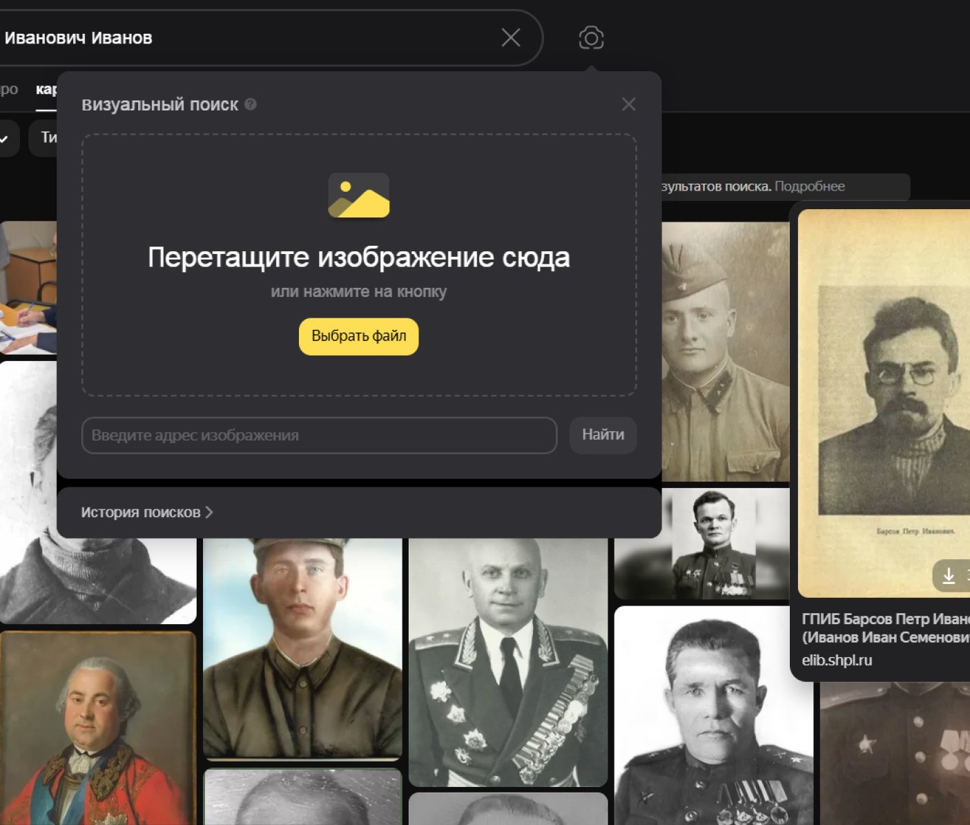 Визуальный поиск по ФИО в поисковой строке браузера и/или поиск по фотографии