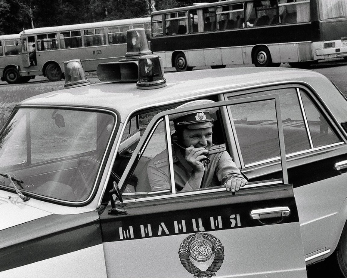 «Моя милиция меня бережет», 1985, Московская область, Рузский район, деревня Федчино / источник: Павел Сухарев, Архив Павла Сергеевича Сухарева, История России в фотографиях (russiainphoto.ru)