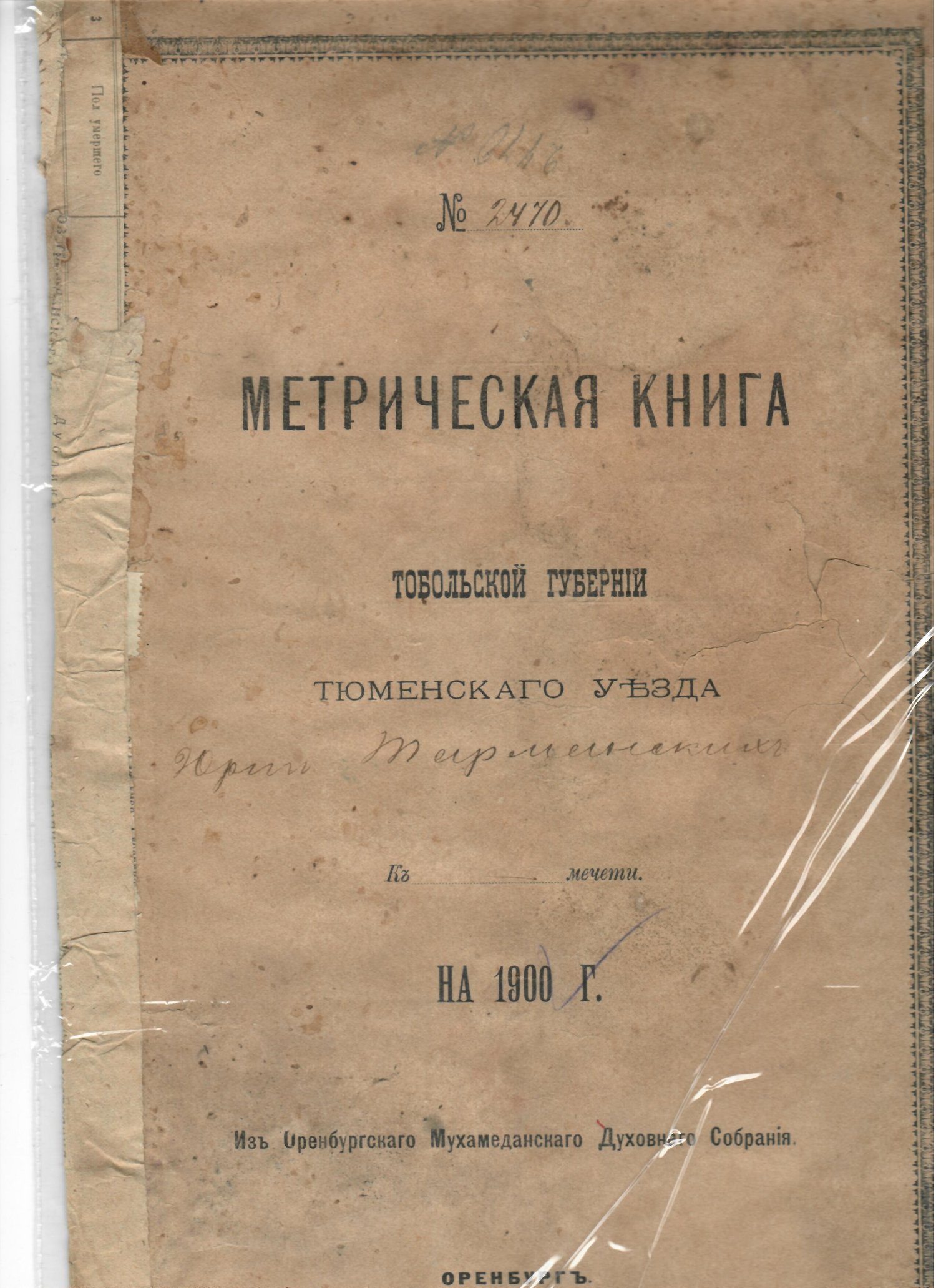 Метрическая книга Тобольской губернии Тюменского уезда юрт Тарманских на 1900 г. Из Оренбургского Мухаммеданского Духовного Собрания. Оренбург, 1900 / источник: Ембаевский сельский музей МАУ Тюменского муниципального района “Центр культуры и досуга “Юность”, (goskatalog.ru)