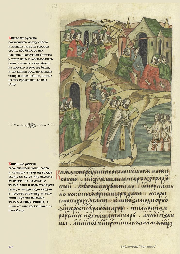 “Князья же русские согласились между собою и изгнали татар из городов своих, ибо было от них насилие, и откупали богатые у татар дань и корыстовались сами…”, 1262 / источник: Лицевой летописный свод XVI века. Русская летописная история (1242-1289), Электронная энциклопедия и библиотека Руниверс (runivers.ru)