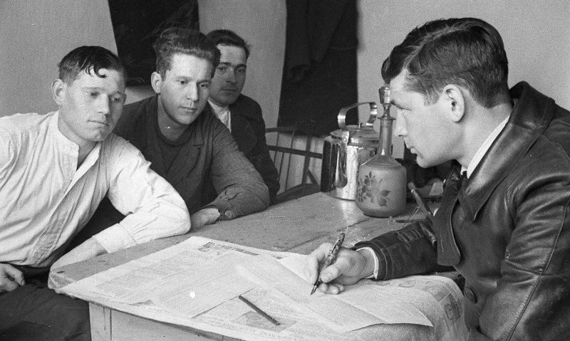 Перепись населения. Переписчик студент Заграйский в холостяцком общежитии завода им. Ворошилова, 1937, Владивосток / источник: Назаров Н. А., ФГБУК “Государственный объединенный музей-заповедник истории Дальнего Востока имени В.К. Арсеньева” (goskatalog.ru)
