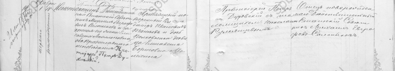Метрическая запись о рождении Константина (ЦГИА СПб. Ф.19, оп. 124, д. 1134, Метрическая книга Сергиевского всей артиллерии собора, 1872 г.)