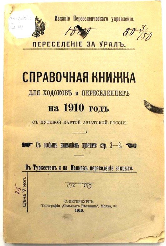 Справочная книжка для ходоков и переселенцев на 1910 год с путевой картой Азиатской России. - СПб.: Тип. "Сельского Вестника", 1910 / Источник: Тобольский историко-архитектурный музей-заповедник