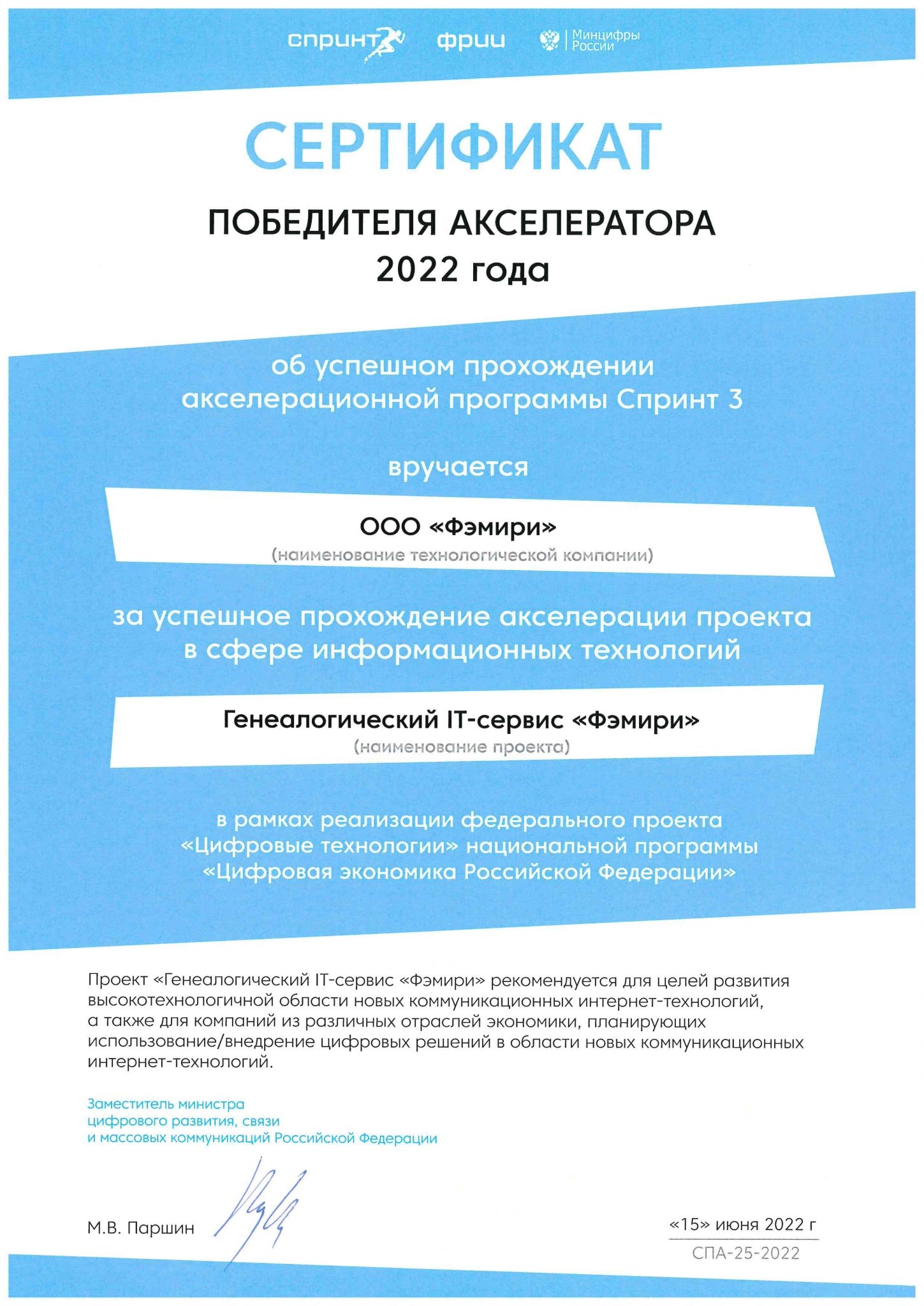 — акселерационная программа «Спринт» во ФРИИ при поддержке Минцифры. За это время запустили MVP сервиса по построению интерактивного древа онлайн.