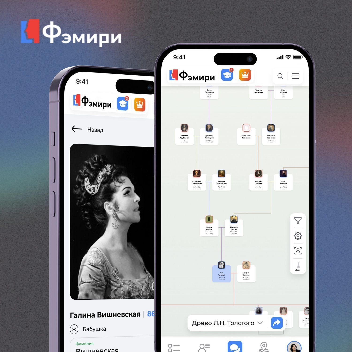 Фэмири — это цифровой «органайзер» и семейная википедия родственников, памятных семейных событий, архивов (фото, документы, переписка, аудио) с возможностью не только хранить и визуализировать контент, но и обогащать его через поиск совпадений (общие родственники, семейные события, фото, места, ДНК и т.п.) и поиск по архивам (оцифрованным и бумажным) с помощью встроенного маркетплейса фрилансеров.