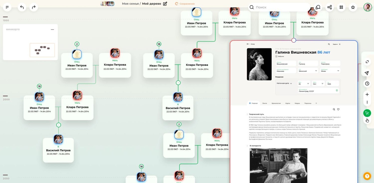 Мы делаем современный онлайн-сервис, который изменит отрасль генеалогии по всему миру, а любой человек может самостоятельно построить свое семейное древо не выходя из дома со всеми подробностями и деталями.